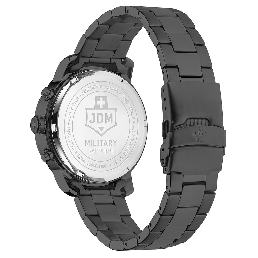 Jacques Du Manoir Military sat dolazi u originalnom fabričkom pakovanju sa kutijom, certifikatima i međunarodnom garancijom.